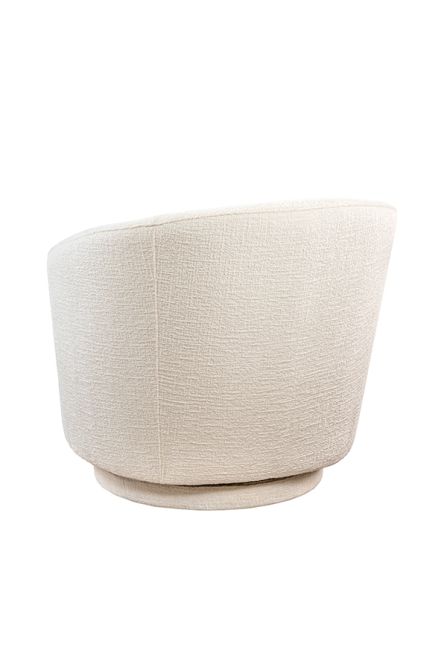 This chair features a very comfortable sprung seat with generous deep padding. It includes a swivel base and is available in various colors. The chair is upholstered in a soft, tactile chenille fabric.