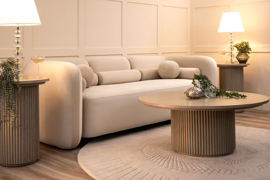 A sculptural contemporary sofa featuring flowing curvaceous lines