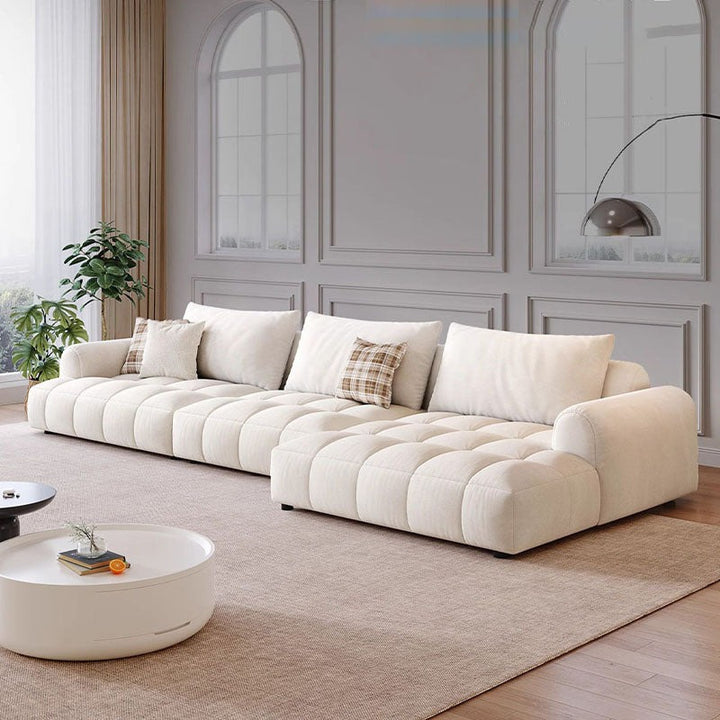 Product name Delilah Violet Three Seater Corner Sofa, White Material Suede, High Density Sponge. Different colors and dimensions are available